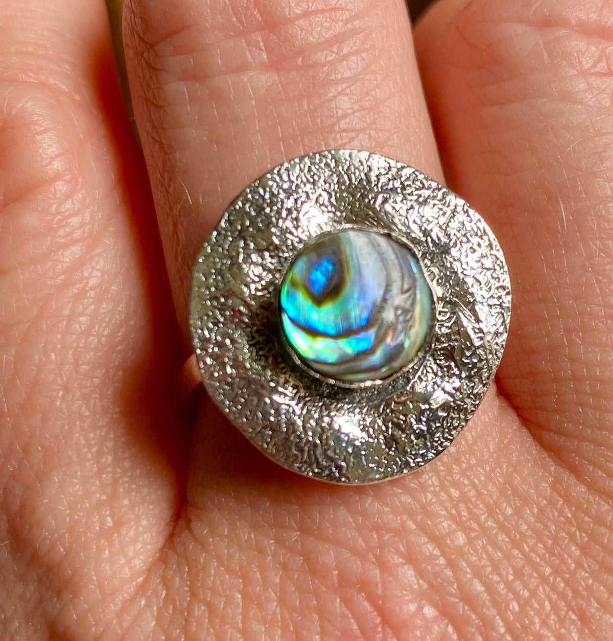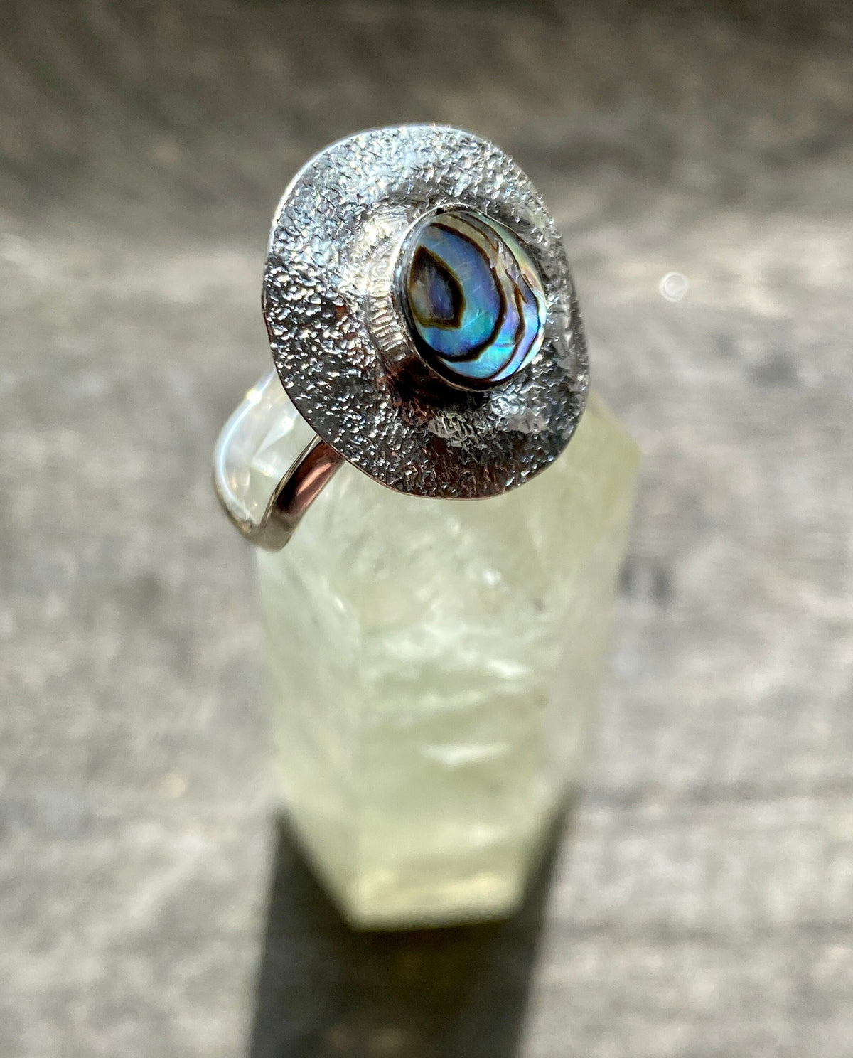 Abalone 925 Silver Handmade Ring Size 8 - Crystal Healing Meditation