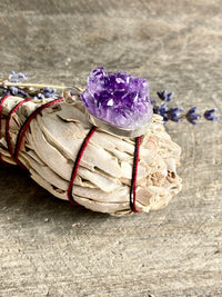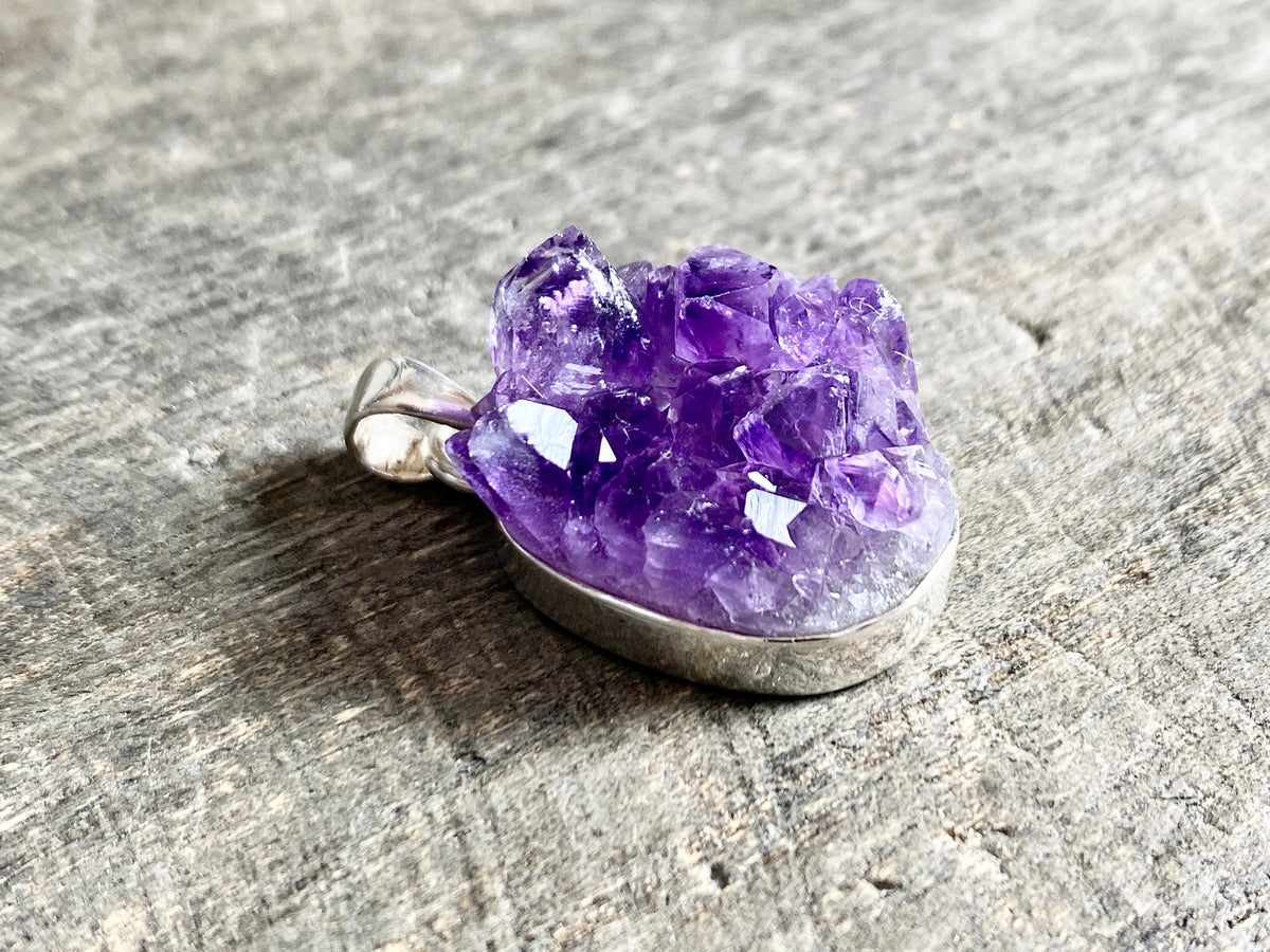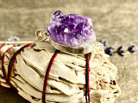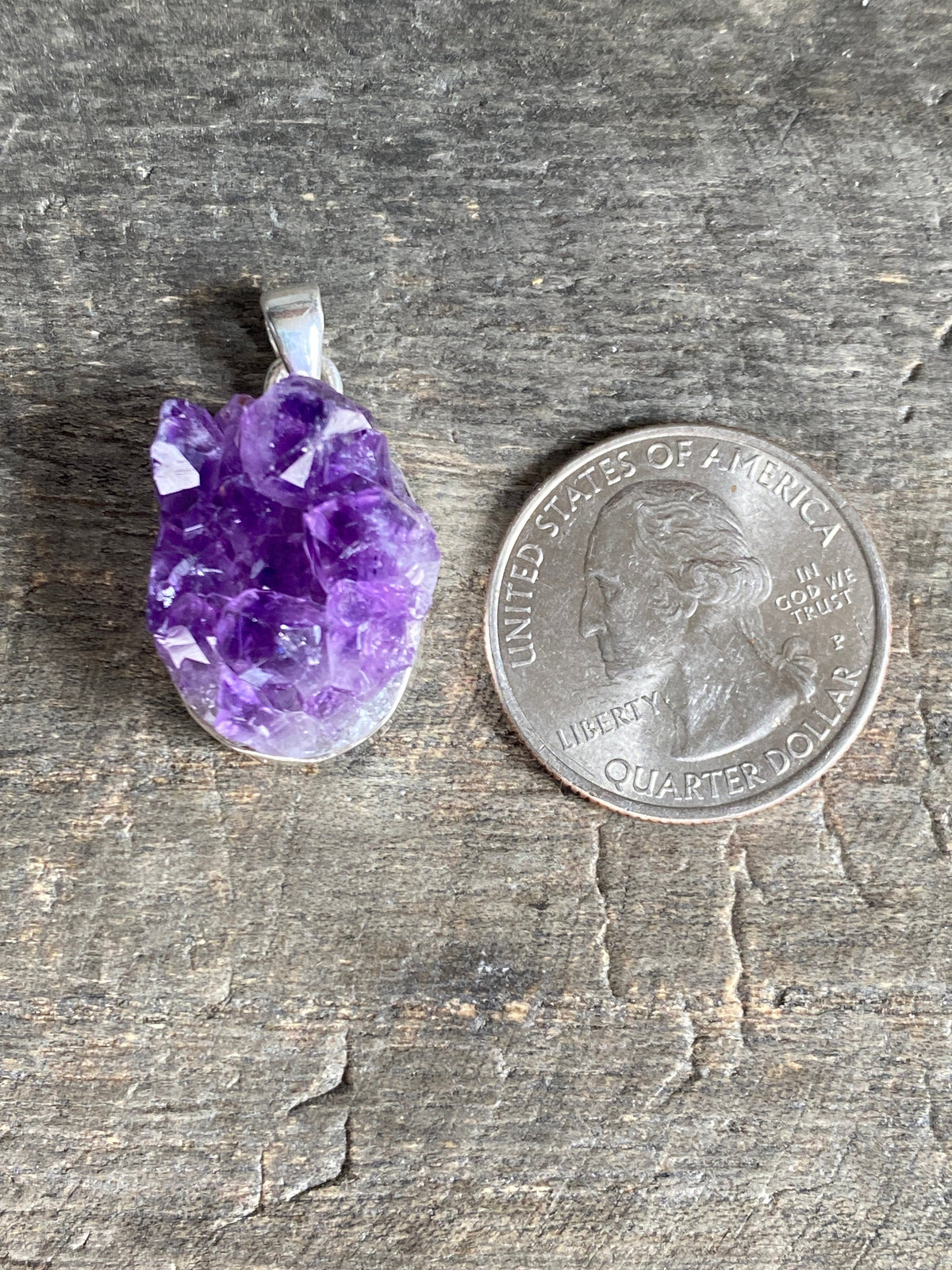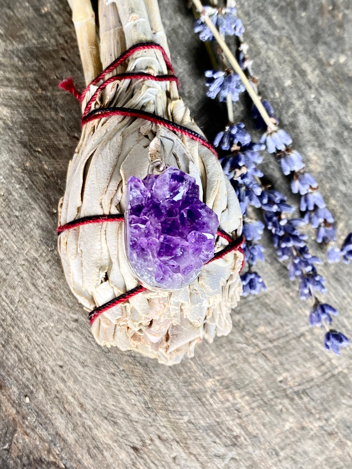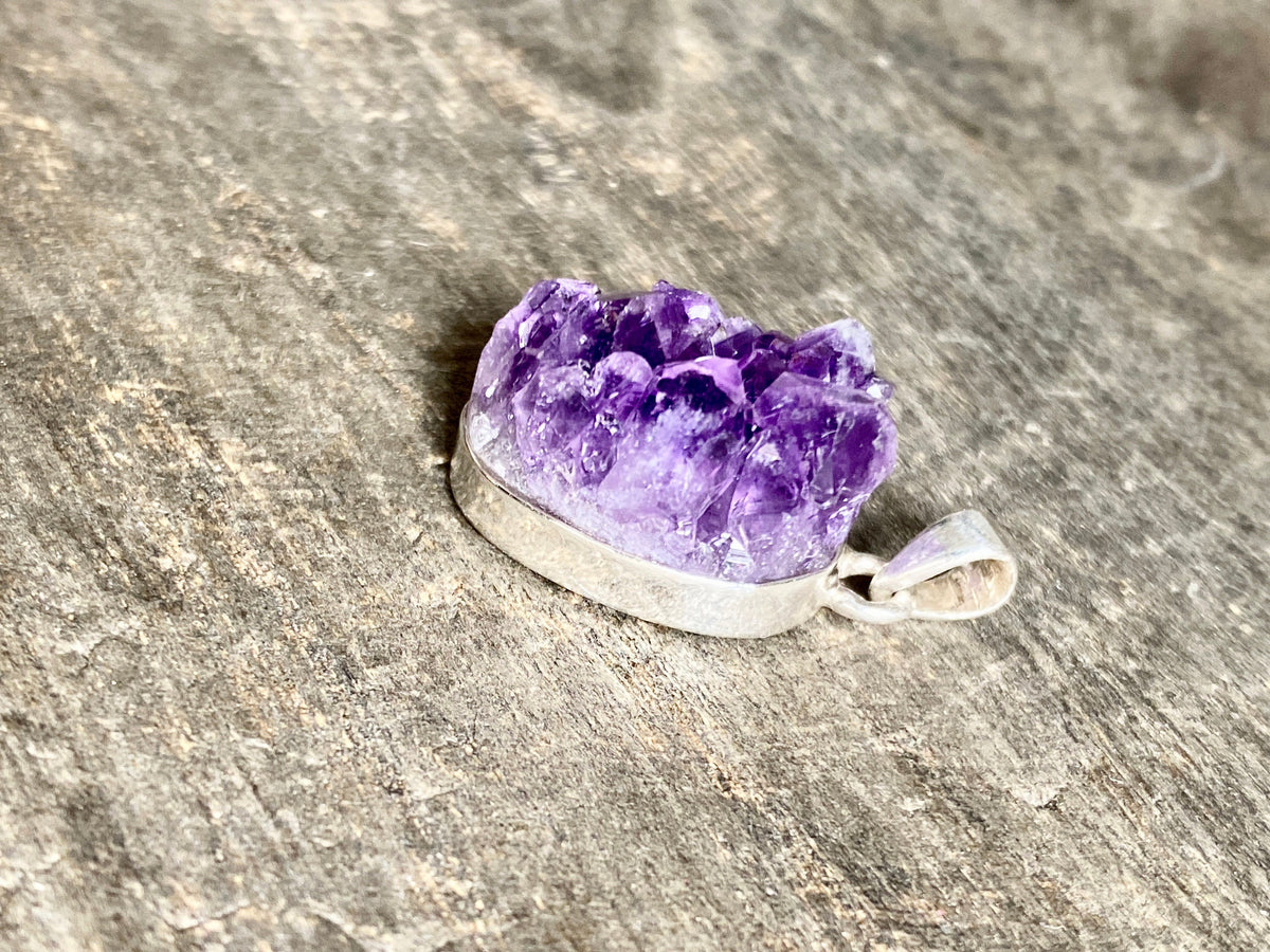 Amethyst Cluster Druzy 925 Silver Handmade Pendant - Crystal Healing Meditation