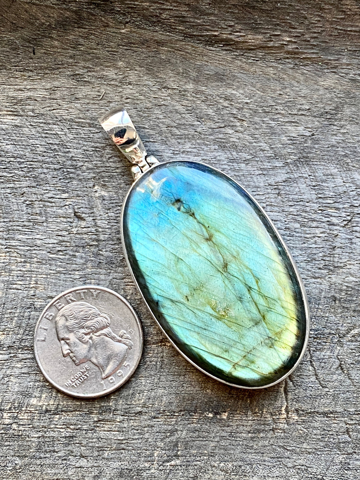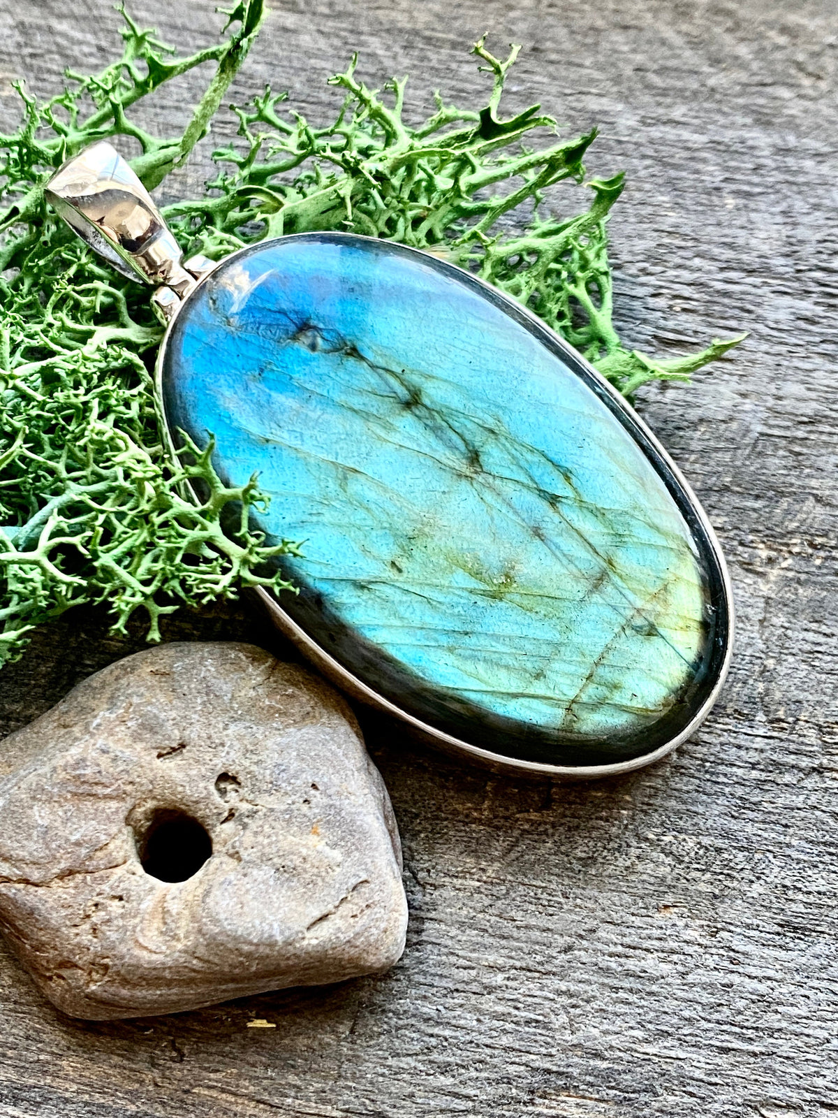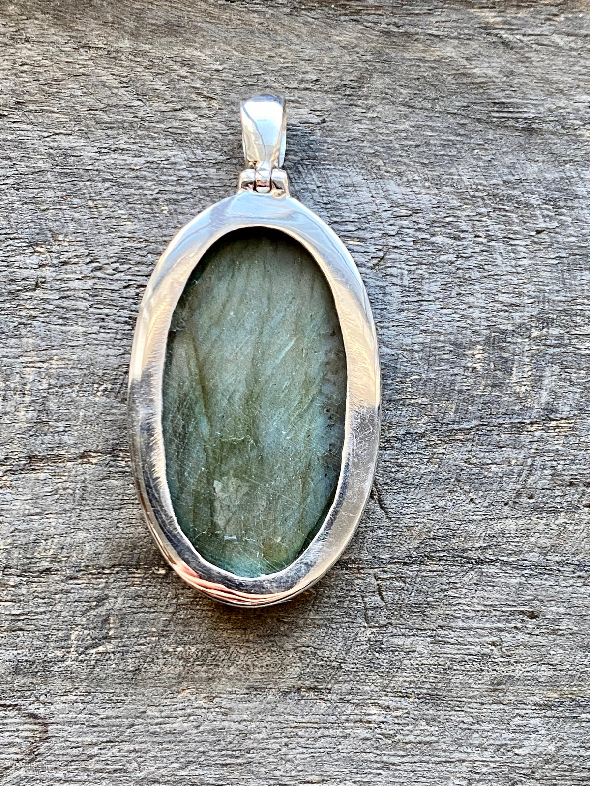 Beautiful Flashy Labradorite Solid 925 Silver Handmade Pendant - Crystal Healing Meditation