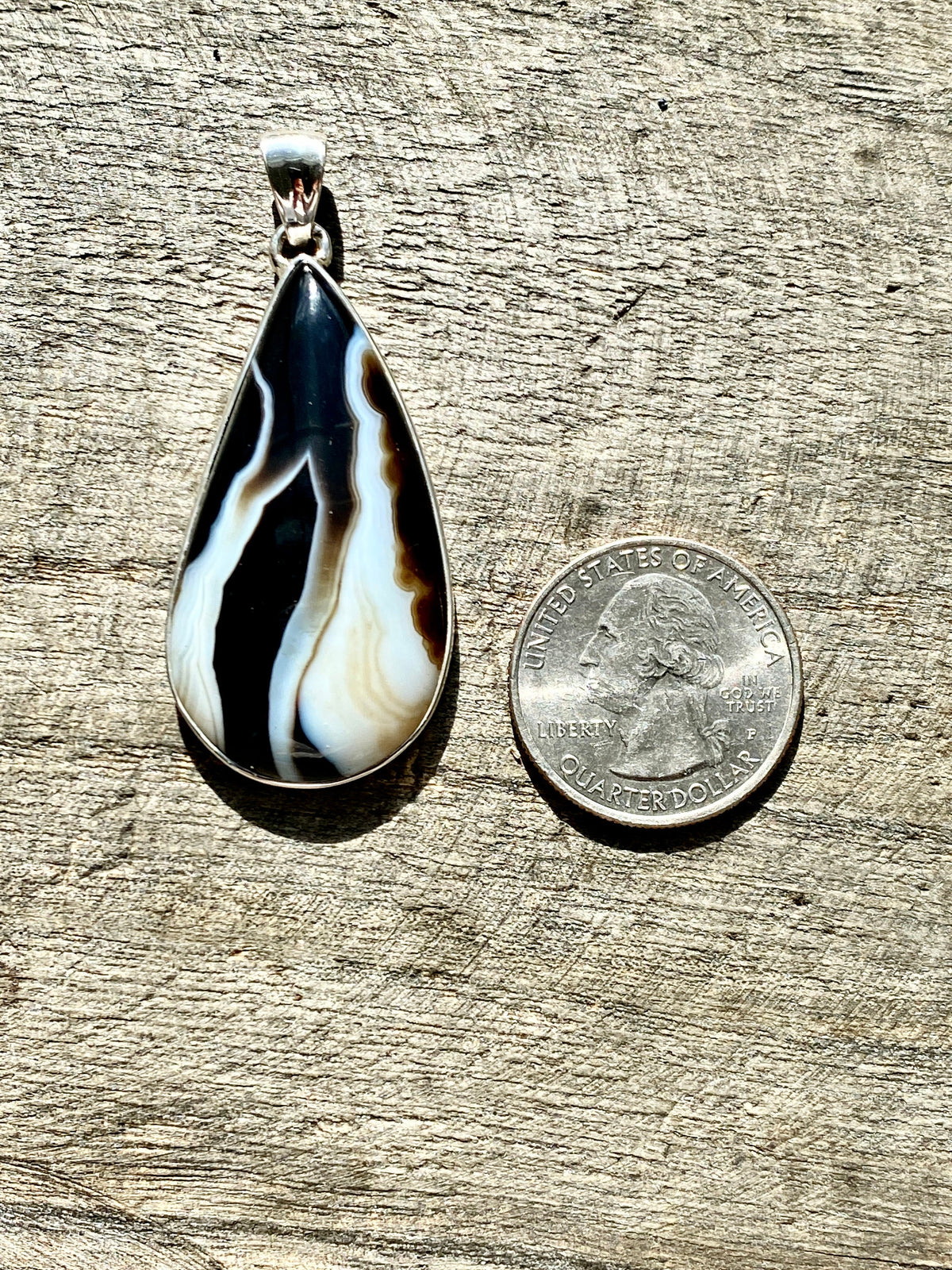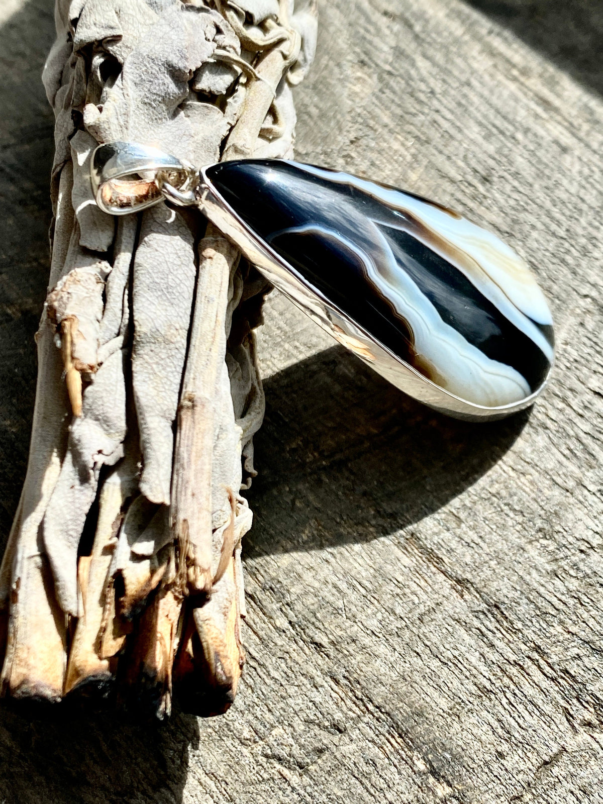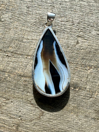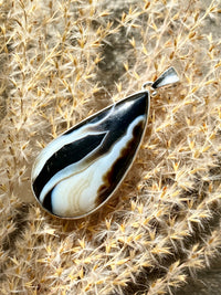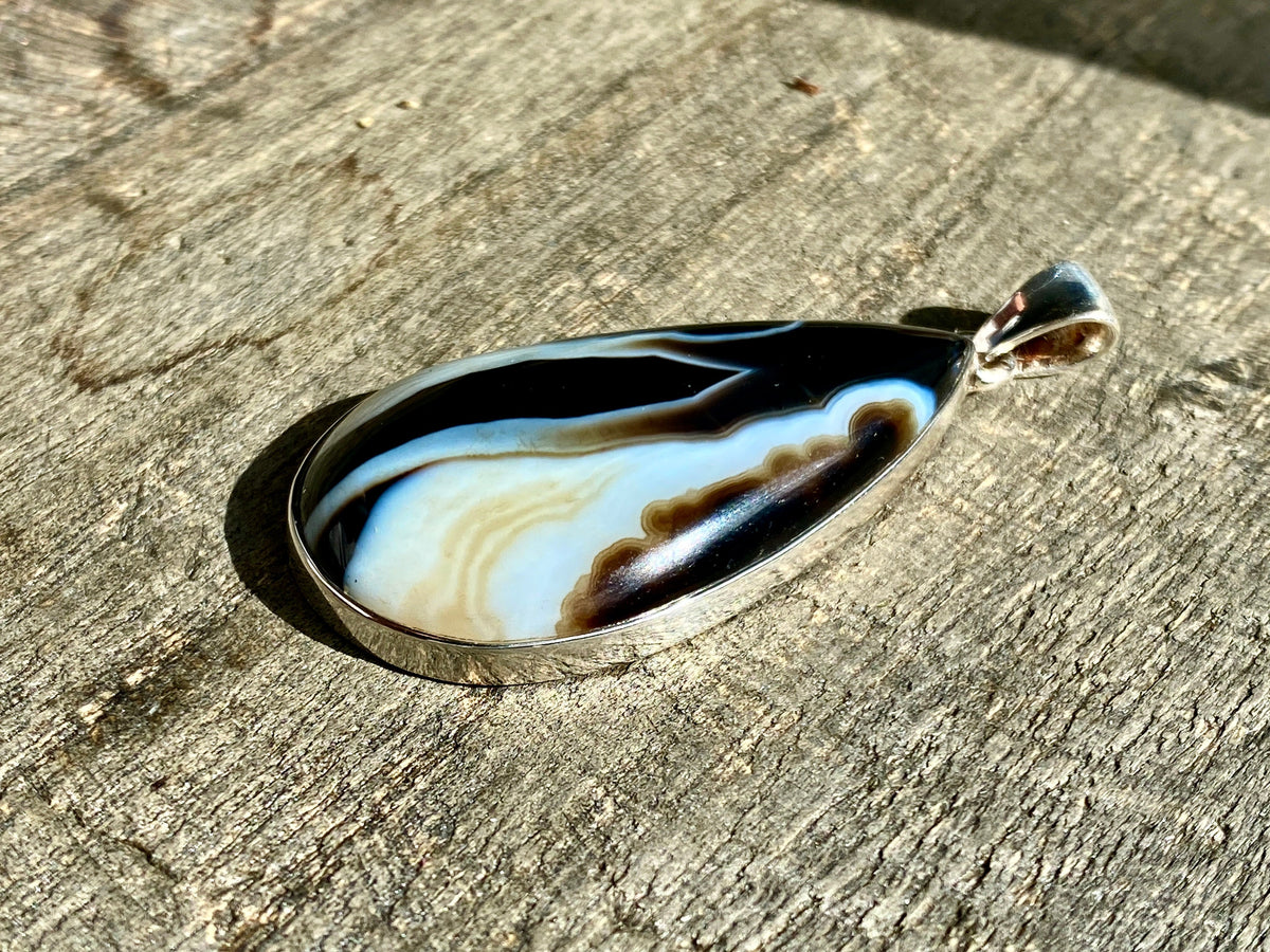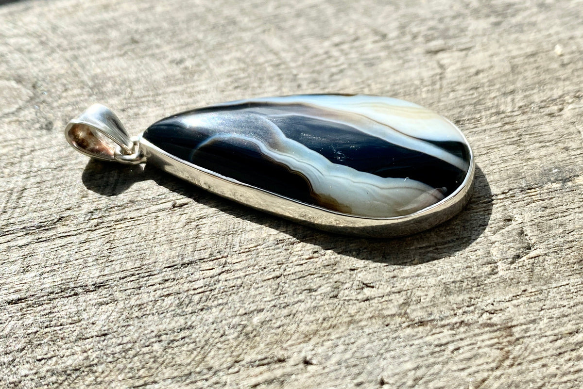 Black Botswana Agate 925 Silver Handmade Pendant - Crystal Healing Meditation