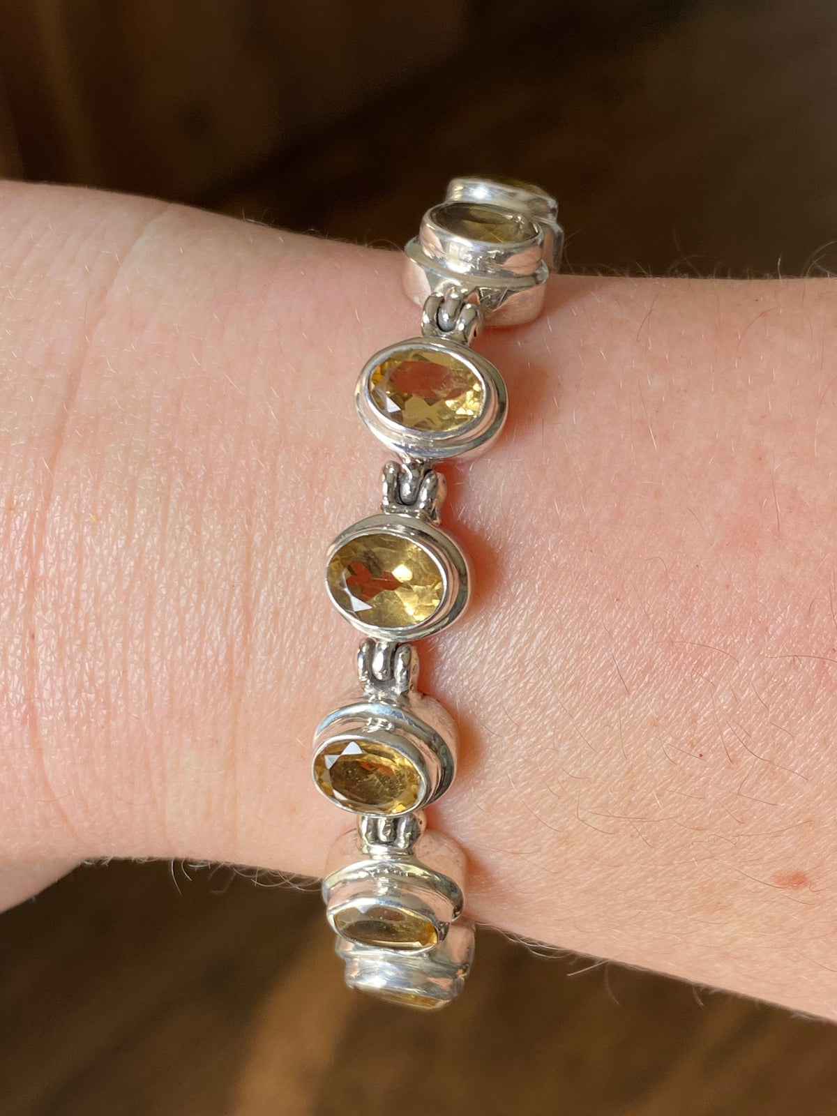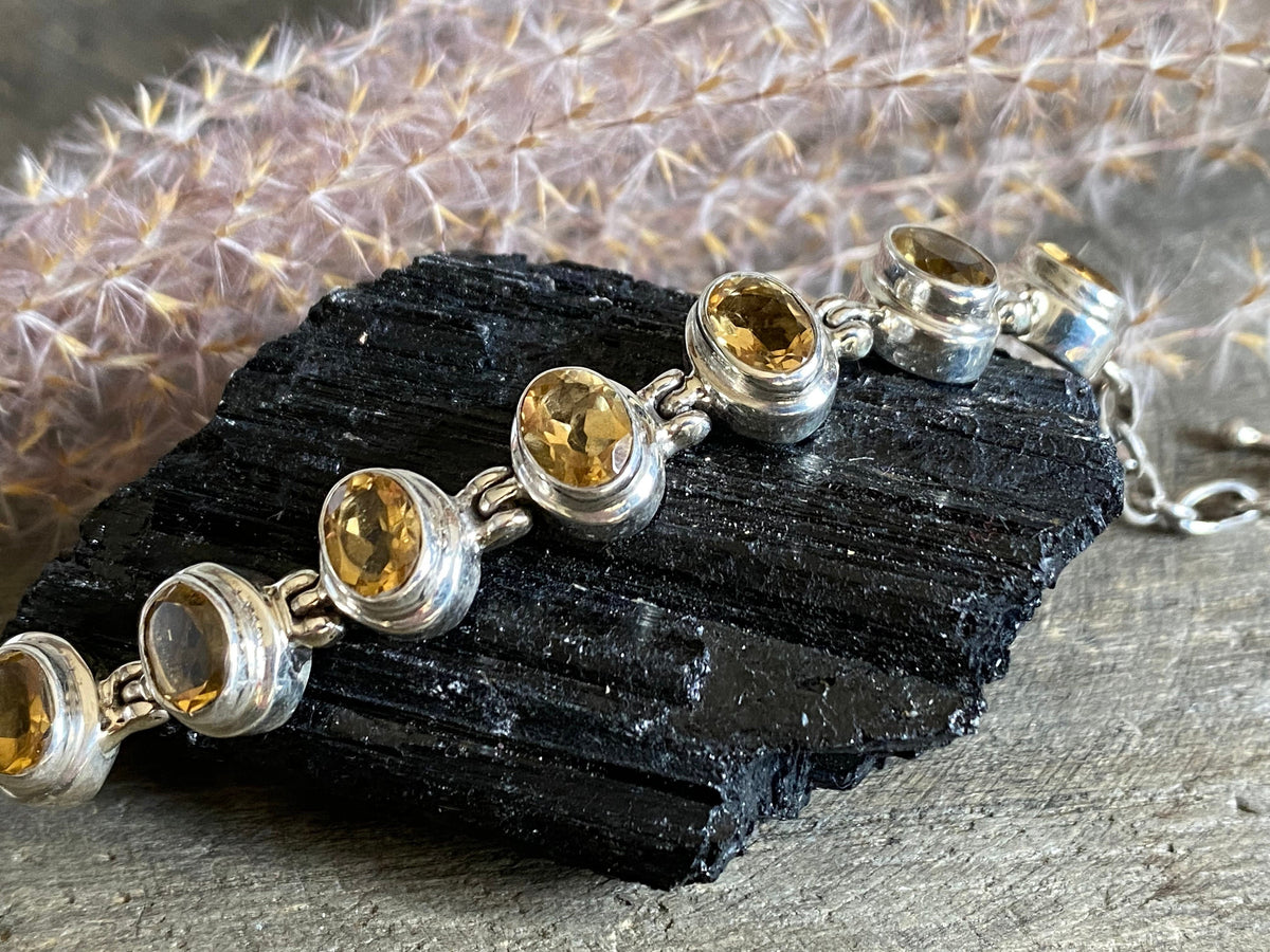 Faceted Citrine Hinged 925 Silver Handmade Bracelet - Crystal Healing Meditation