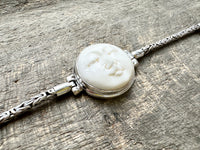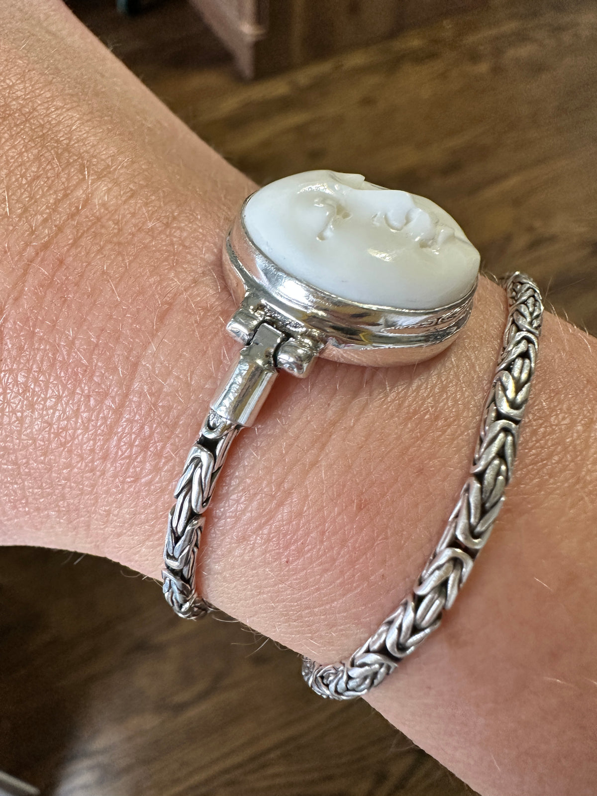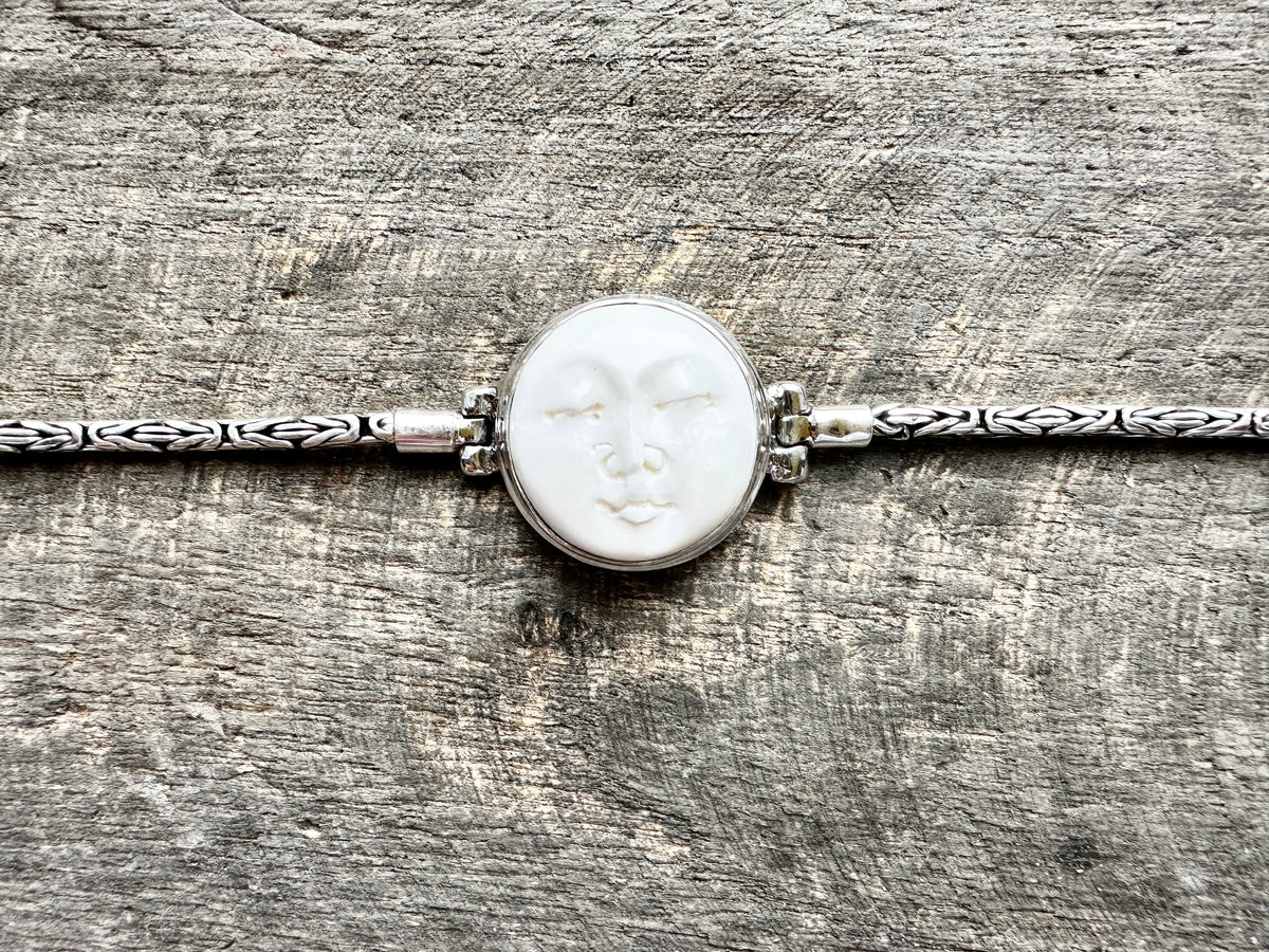 Design: Embrace the divine with the exquisite detailing of the Moon Goddess. Hand-carved to perfection, the lunar-inspired charm captures the mystique of the night sky. The intricate silver links create a bracelet that seamlessly blends bohemian flair with timeless sophistication.