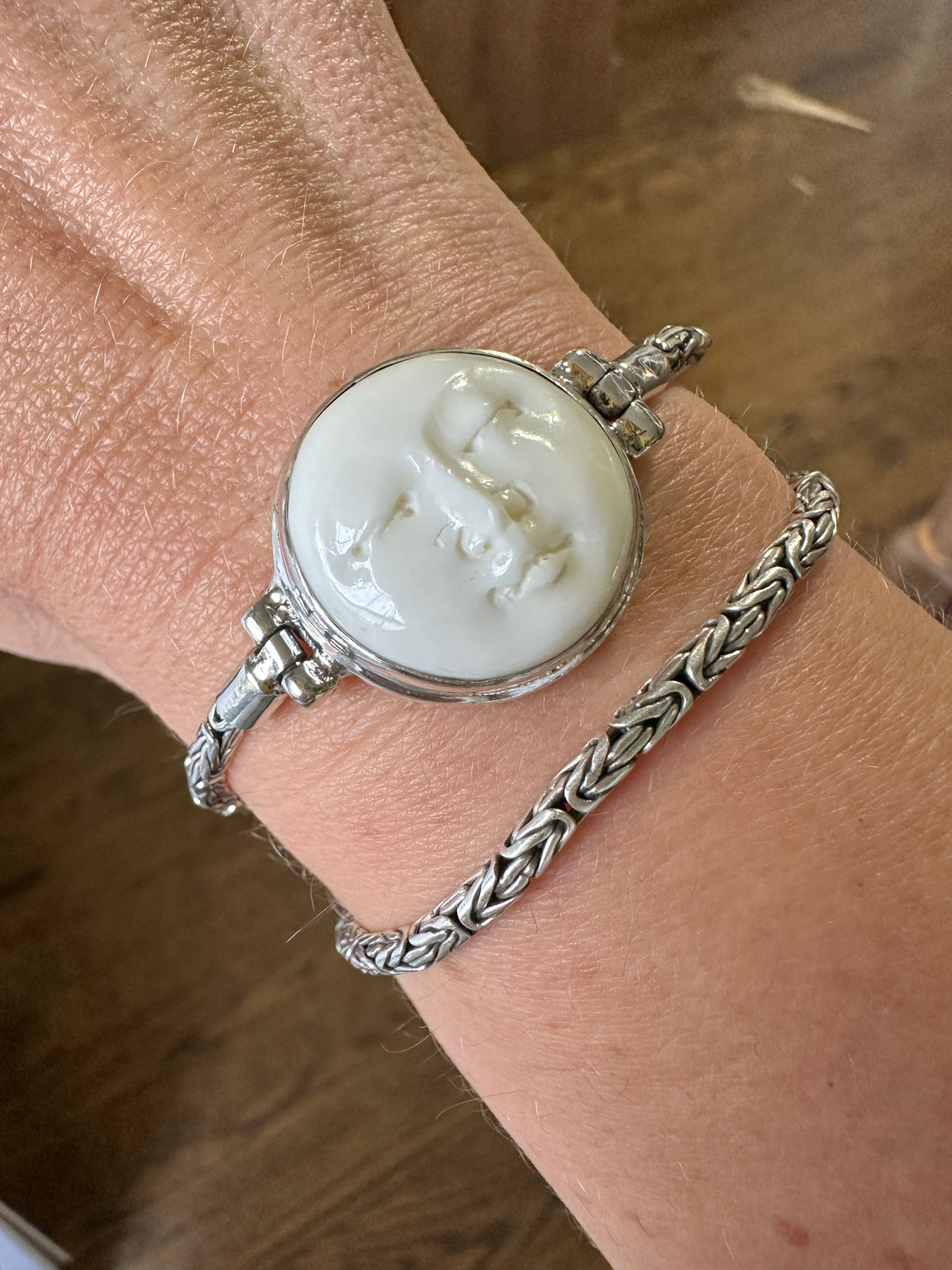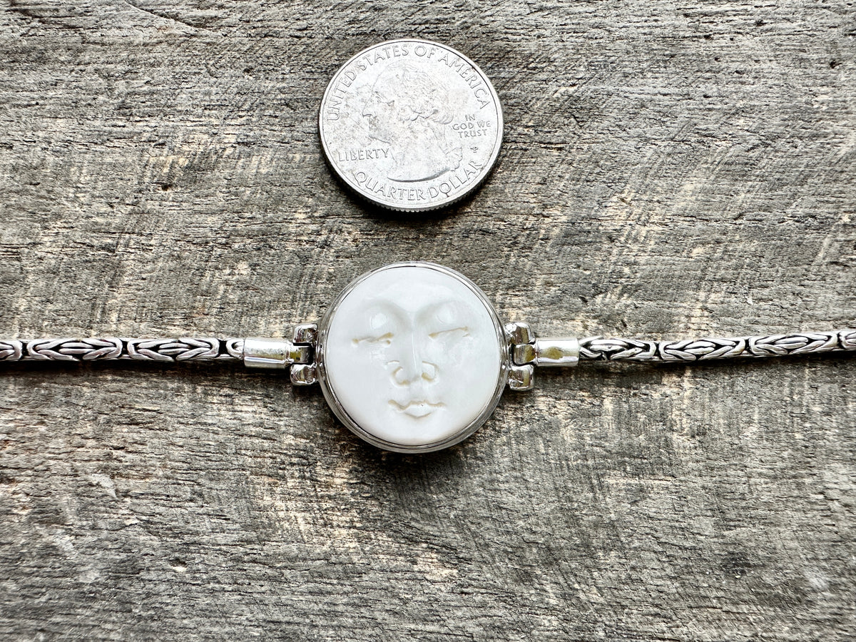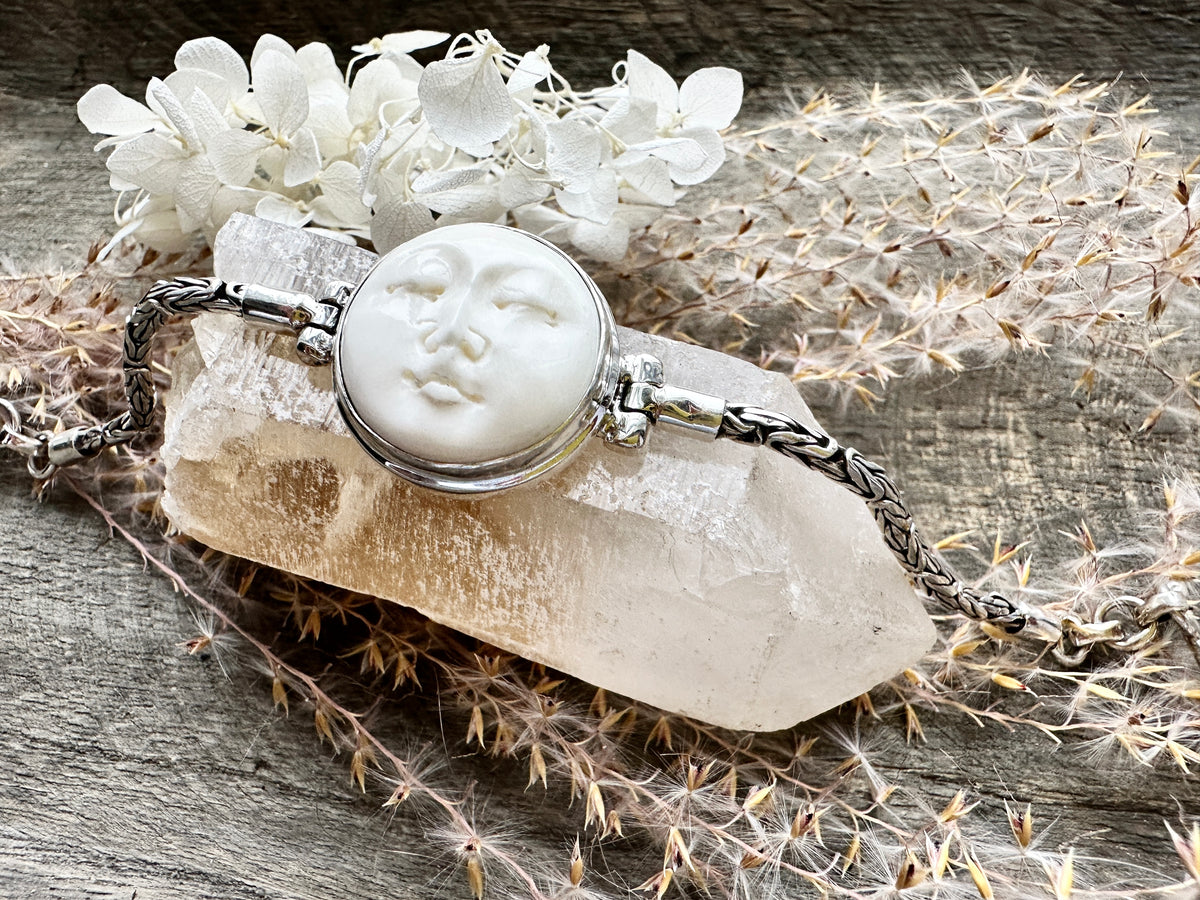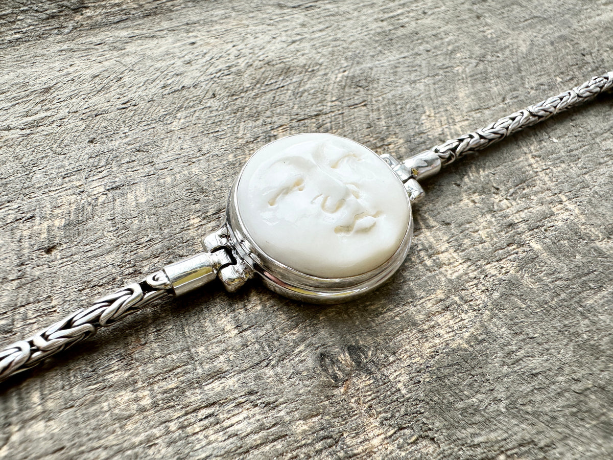 Hand Carved Moon Goddess 925 Silver Handmade Bracelet