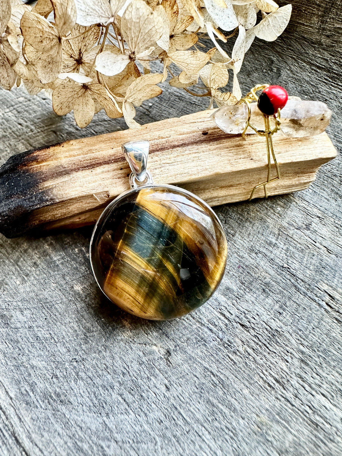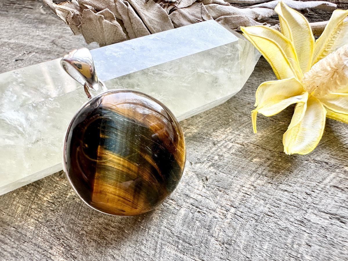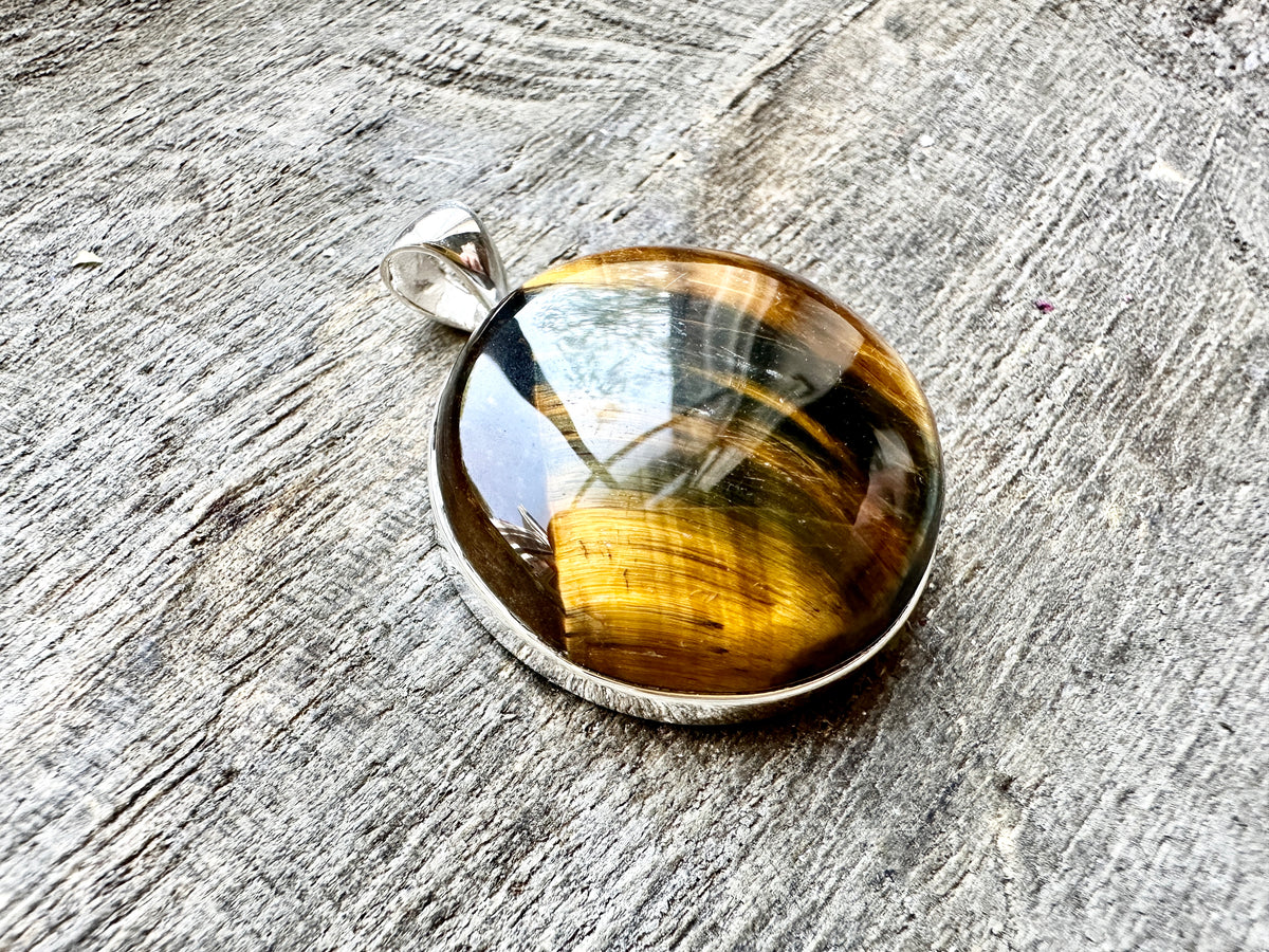 925 Silver Circle Tiger's Eye Pendant: Timeless Charm with Earthy Energies