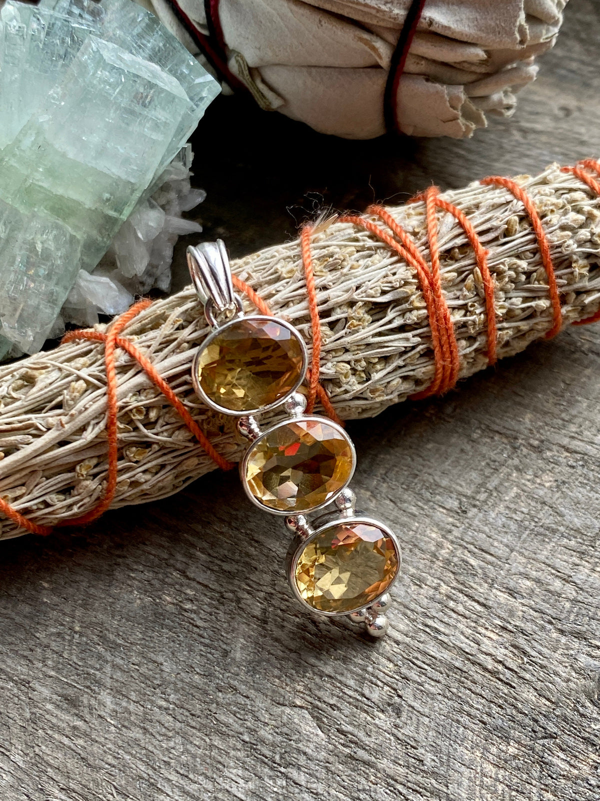 Trilogy Citrine Solid Silver Handmade - Crystal Healing Meditation