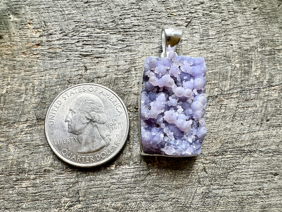 The pendant is embraced by a 925 solid silver setting, skillfully crafted to enhance the natural beauty of the grape agate while providing durability and timeless elegance. The included 18" solid silver cable chain completes the ensemble, ensuring a seamless fit and comfortable wear.