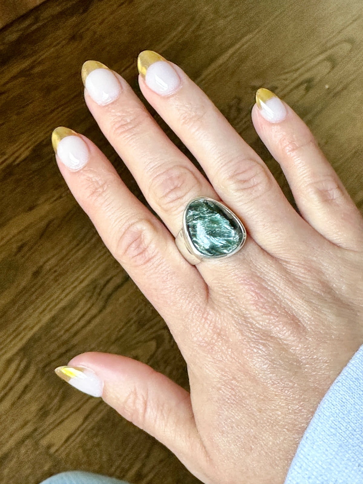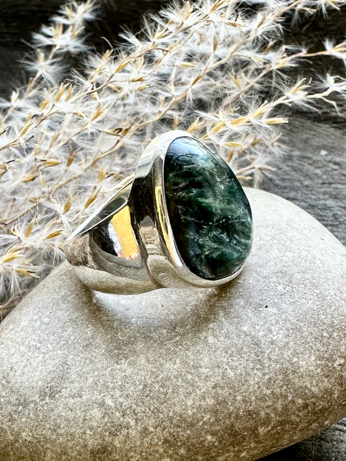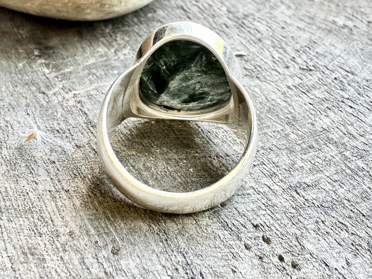 Enlightened Seraphinite: Seraphinite 925 Solid Silver Ring - Illuminate Your Path with Heavenly Brilliance
