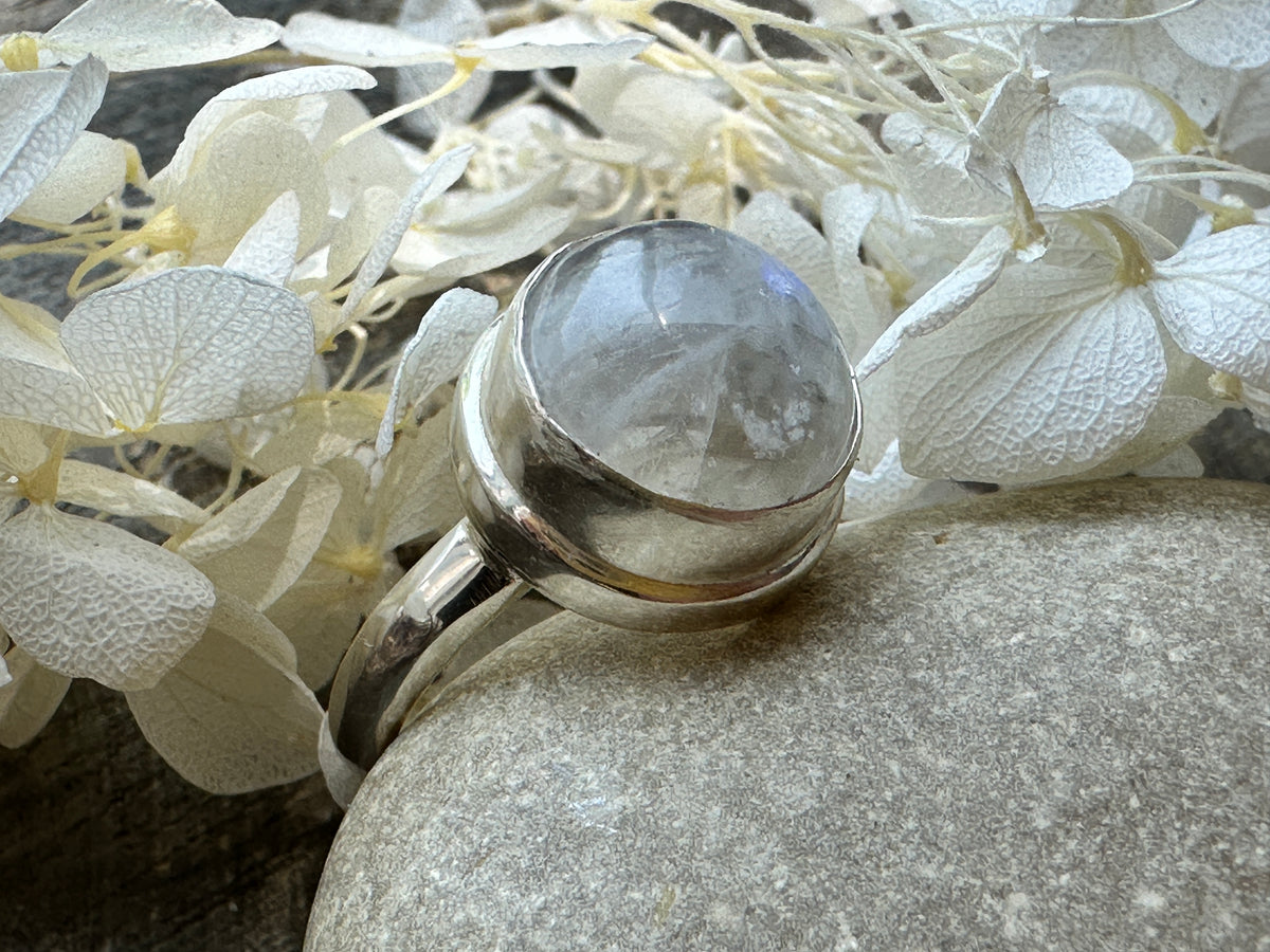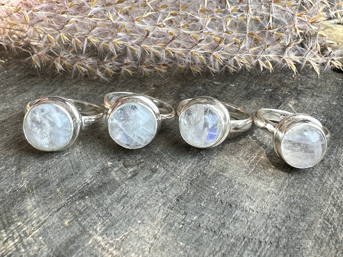 Mystic Moonbeam: Handcrafted Full Moon Moonstone Ring in Solid 925 Silver