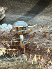 At the heart of this ring, a captivating moonstone gleams with a celestial glow. Moonstone, known for its mystical properties, is believed to embody the energy of the moon itself. With its pearly iridescence and enchanting play of light, this gemstone evokes a sense of magic and mystery.